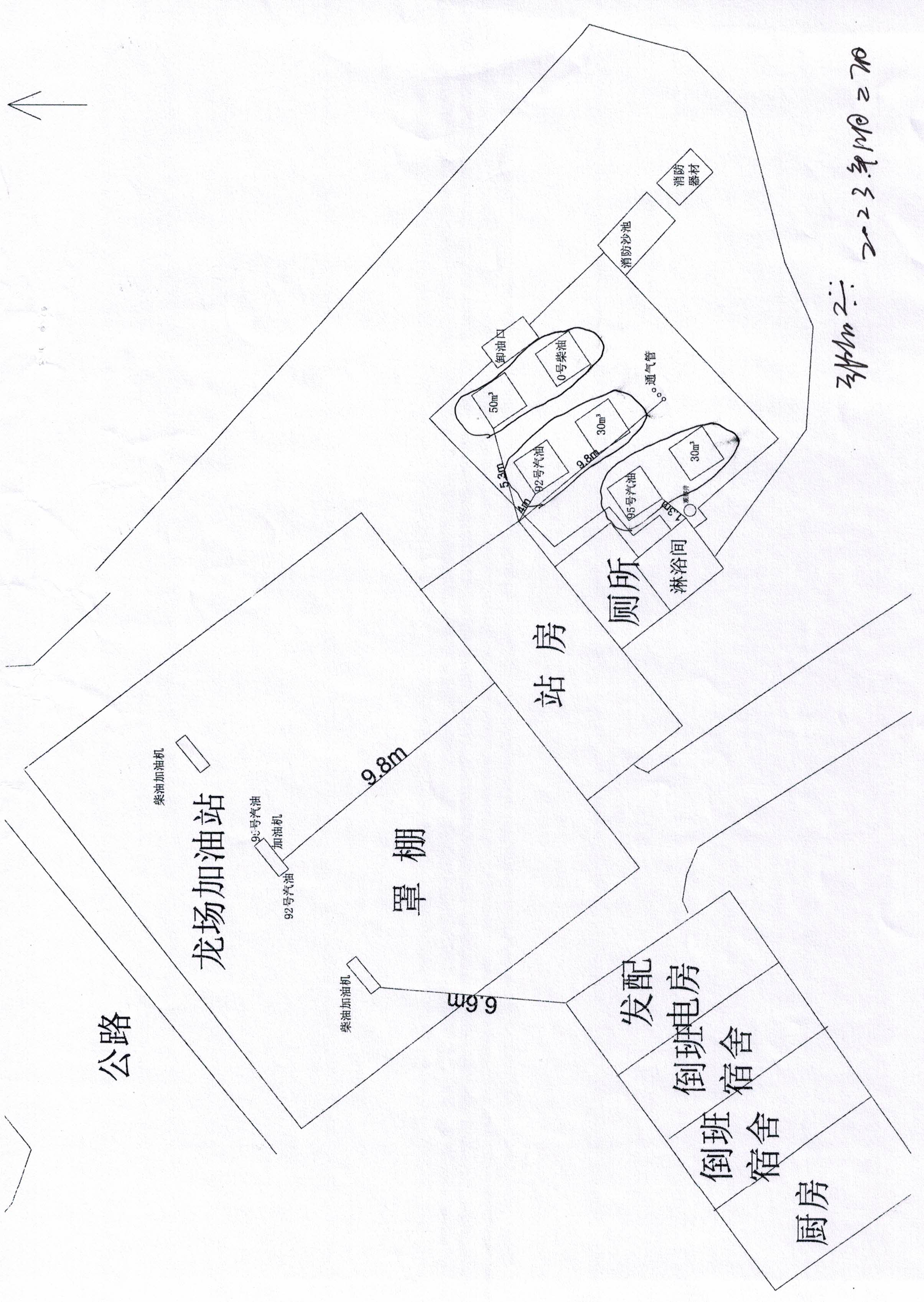 隱患: (1)站房內(nèi)的配電箱門面無“當(dāng)心觸電”的標(biāo)識。(2)汽油加油機(jī)內(nèi)部的真空泵外殼未接地。 (3)油罐區(qū)汽油通氣管檢測球閥口無絲堵。(4)油罐操作井內(nèi)的液位儀防爆接線盒外殼未接地。 (5)油罐區(qū)積油井內(nèi)的排油閥無絲堵。 | ||||||||